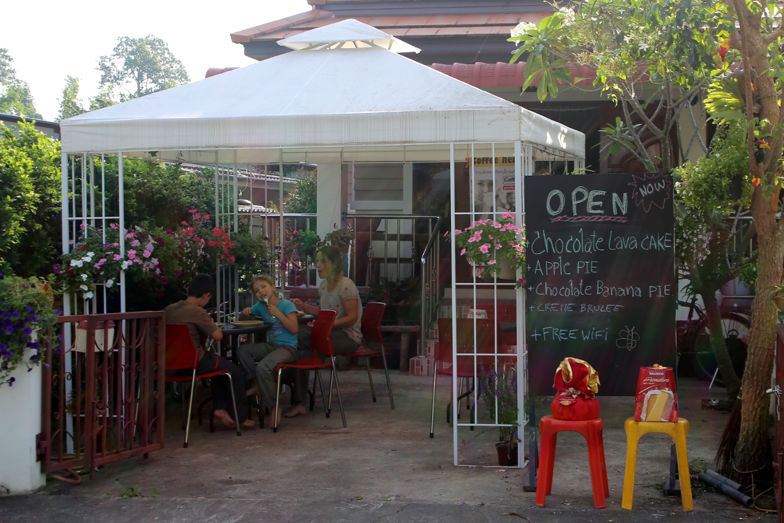 C'est vraiment extra, nous avons retrouvé Ludo (le fils de la soeur de la mère de la femme du frère de Fab ;-)) qui vit ici à Huai Yang avec Chu. Tous les 2 se sont très bien occupés de nous, nous ont hébergés et sont super sympas ! Et le must, c'est que Ludo est cuisto, qui plus est cuisto français, pour notre plus grand bonheur !!! Delicieux p'tits dej, crèmes brûlées, fondants au chocolat, crêpes salées, etc !!! Nous nous sommes régalés :-)