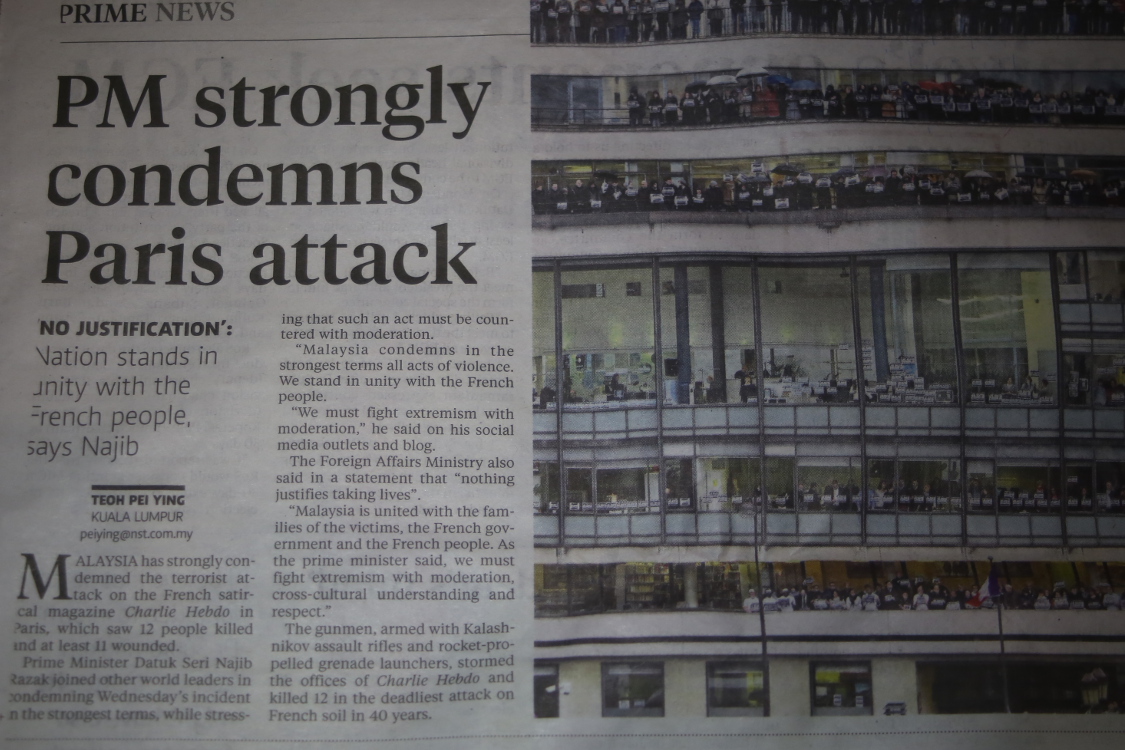 On pensait écrire un tout autre article mais on n'a pas le goût ... Charlie fait la Une des journaux ici aussi en Malaisie.