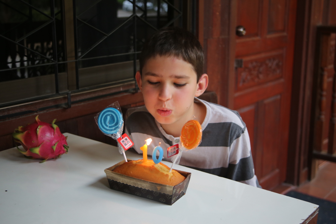 Et au fait, petit quizz : quelle est cette chose rose à côté du gâteau d'anniv ?